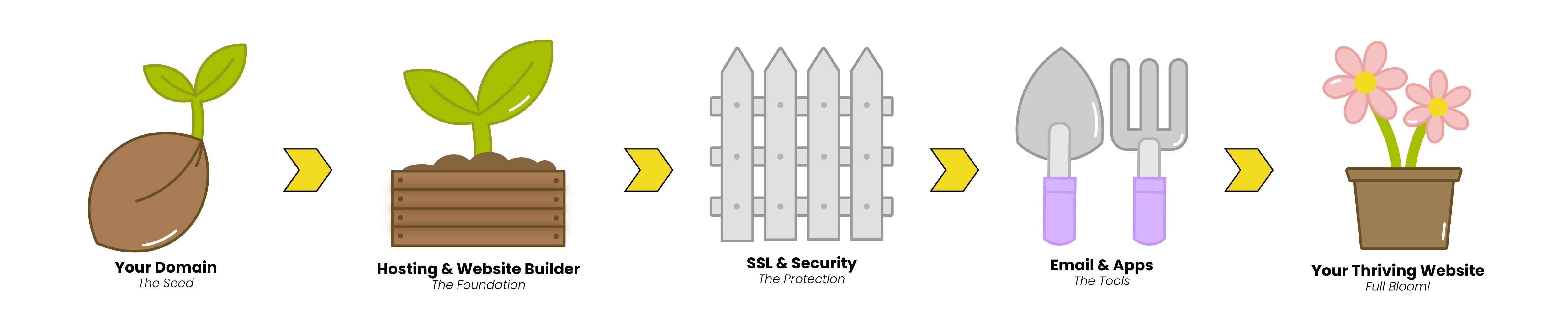 A garden doesn't grow on soil alone. You need the right tools: watering cans, trellises, fertilizer, and sometimes a helping hand. That's what our email, productivity, and app add-ons are for your website. Professional email builds credibility. eCommerce tools open your store. Marketing apps bring in customers. And PapaCare means you never have to worry about the technical side.