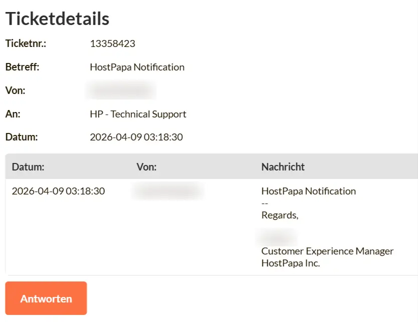 Um Ihnen noch besseren Service zu bieten, kombiniert der Kundenservice von HostPapa manchmal Tickets, die zum gleichen Problem geschrieben wurden. Bitte werfen Sie einen Blick auf andere Tickets, da Sie dort wahrscheinlich die Informationen finden, nach denen Sie suchen.