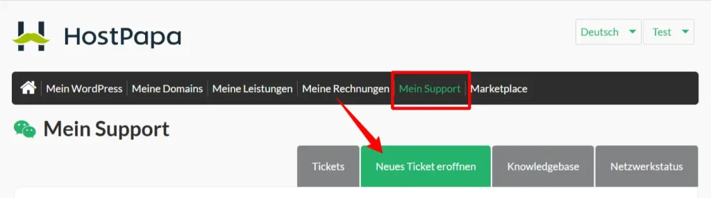 Wenn Sie Hilfe zu Ihrem HostPapa-Konto benötigen, öffnen Sie bitte einfach ein Supportticket über Ihr Dashboard.