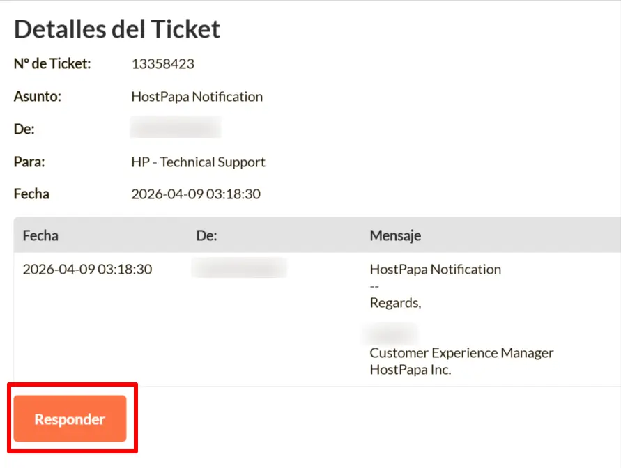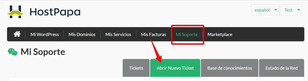 Si necesitas ayuda con tu cuenta de HostPapa, por favor, abre un ticket de soporte al cliente desde tu Escritorio.