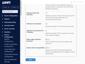 If you’re managing a HostPapa VPS server, you can adjust the FTP connection limit using WHM’s FTP Server Configuration page.